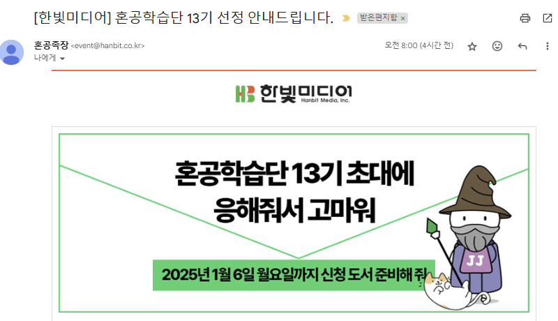 한빛미디어에서 혼공학습단 메일을 보고 신청하게 되었습니다.
