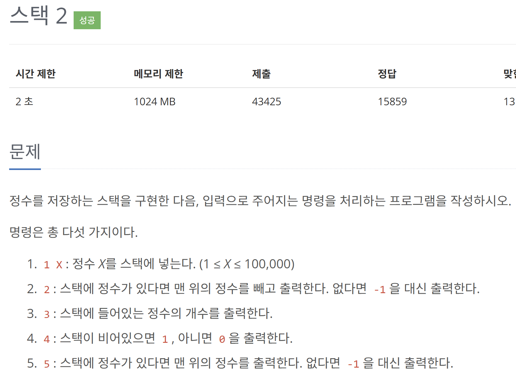 스택 구조를 구현 하고 명령어에 따라 처리 하는 문제입니다. (실버 4단계)