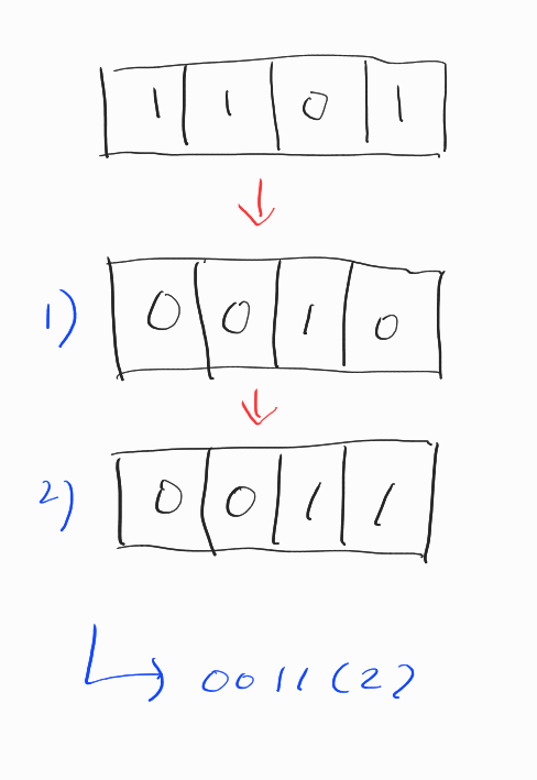 1101(2)의 음수값은 0011(2) 인 것을 간단하게 구할 수 있습니다.